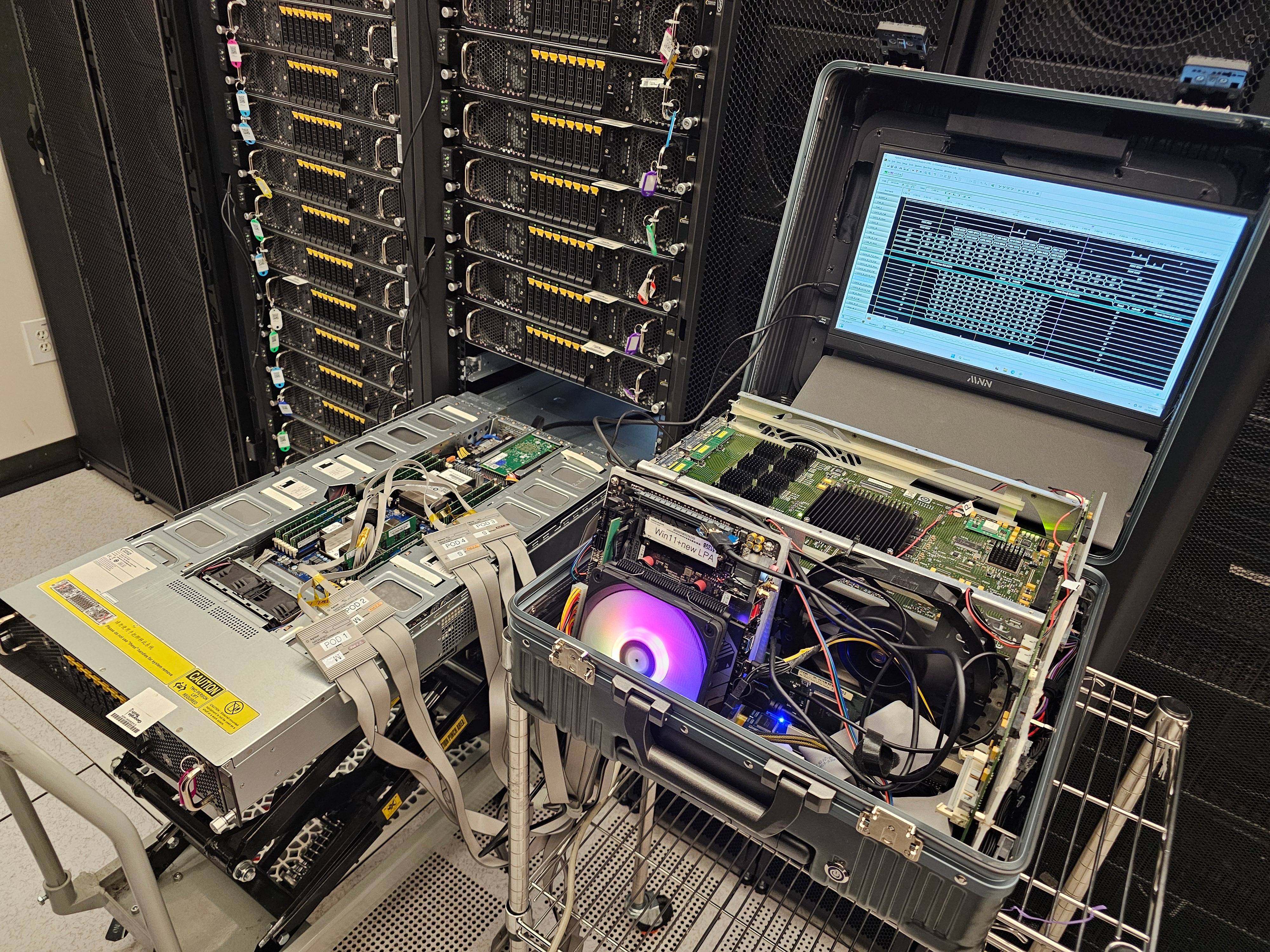 You are right, hopefully no one sane allows bulky lab instruments into their datacenters unsupervised. However, we have also built a portable version, which fits neatly into a 17" briefcase, ready to be taken to new exciting places with only the freshest keys. When closed, it looks like a regular briefcase and even fits under the seat in front of you in an airplane, so good luck explaining this to TSA agents at the airport near you. Finally, the briefcase does not need to be open for the attack to work and it even has a cup holder for your coffee.